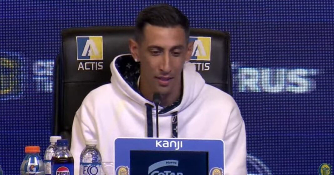 En medio de una jornada más que especial para Ángel Di María, quien fue presentado oficialmente con la camiseta de Rosario Central y tuvo su primer entrenamiento bajo las órdenes de Ariel Holan, el campeón del mundo vivió un momento especial durante su primera conferencia de prensa oficial.