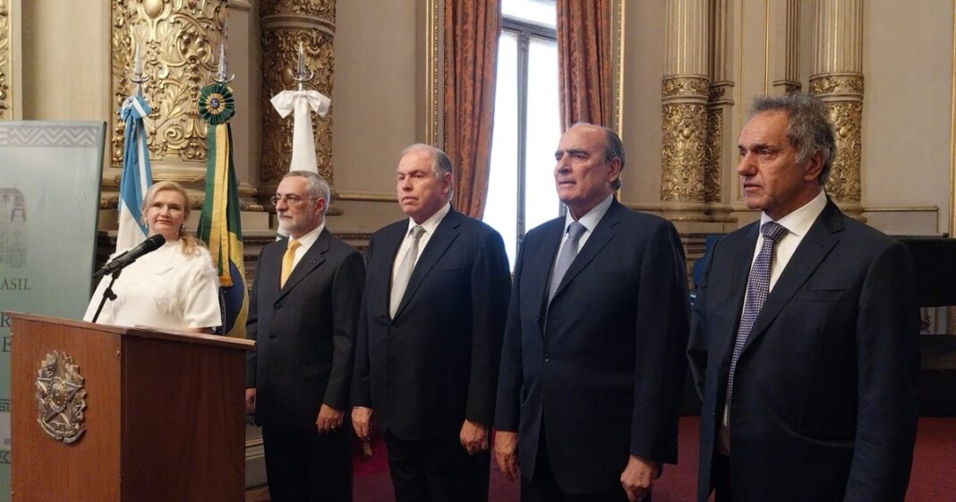 Luego hizo una enumeración de hechos, que se constatan efectivamente en los números: el trabajo comercial Hidrovía Paraguay-Paraná, en cuyo pliego de licitación para la privatización de su dragado el gobierno de Milei no pudo avanzar. Recordó que la bandera brasileña sigue flameando sobre la embajada argentina en Caracas, en el sentido de que Brasil representa los intereses de Argentina a raíz de la práctica ruptura de relaciones entre la dictadura chavista y el gobierno libertario.