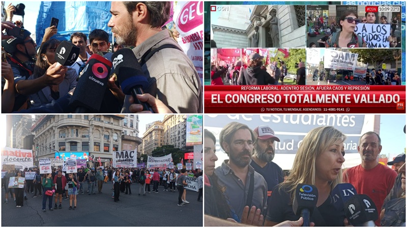 El impacto mediático de esta protesta fue enorme. A continuación presentamos una selección de contenidos, sumando las apariciones en canales de TV y en programas de radio, plataformas digitales, portales nacionales, provinciales e internacionales. El material no representa la totalidad de lo emitido —especialmente durante el momento que tuvo lugar el corte en el Obelisco— sino aquello que pudo registrarse a partir de intervenciones y entrevistas realizadas a diputados y trabajadores participantes.